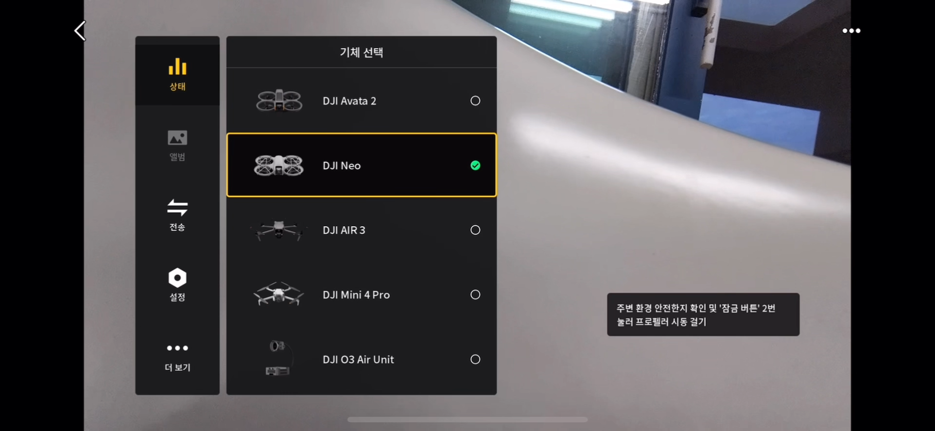 기체 선택에서 DJI neo 선택